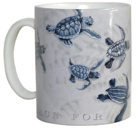 Baby Sea Turtles 11 OZ. Ceramic Coffee Mug This colorful mug features the babies of several species of Sea Turtles and their Race for Survival after they leave their nest and head for the sea. Microwave and dishwasher safe. Makes a wonderful gift for the nature lover in your family. This is a new product.